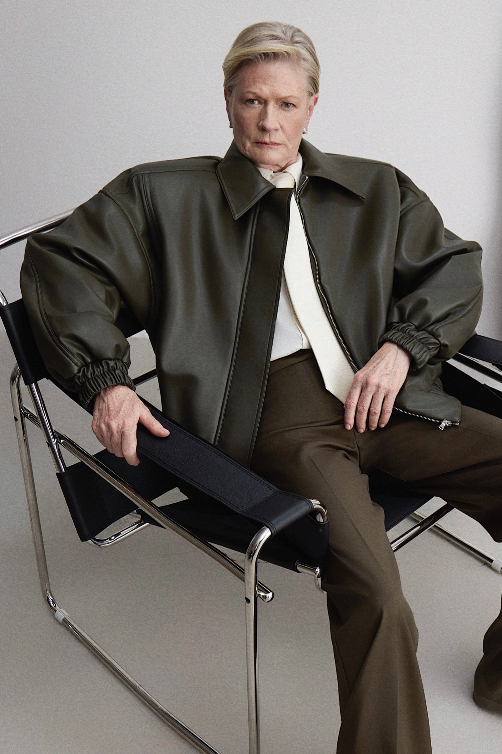 Bomber in ecopelle. La superficie liscia si arricchisce di un dettaglio distintivo sul retro: l’etichetta in tessuto con logo.